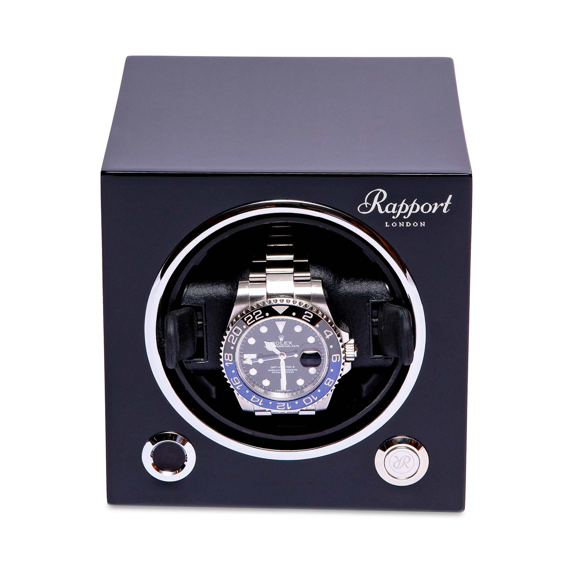 This luxury watch winder is available in Black, White, Admiral Blue, Crimson Red, Racing Green, Platinum Silver, Maple Wood, Macassar Wood or Carbin Fibre finish. It's protective for your Panerai, robust for your Rolex and elegant for your Audemars.