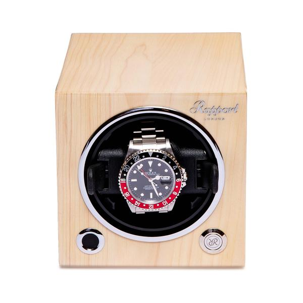 This luxury watch winder is available in Black, White, Admiral Blue, Crimson Red, Racing Green, Platinum Silver, Maple Wood, Macassar Wood or Carbin Fibre finish. It's protective for your Panerai, robust for your Rolex and elegant for your Audemars.