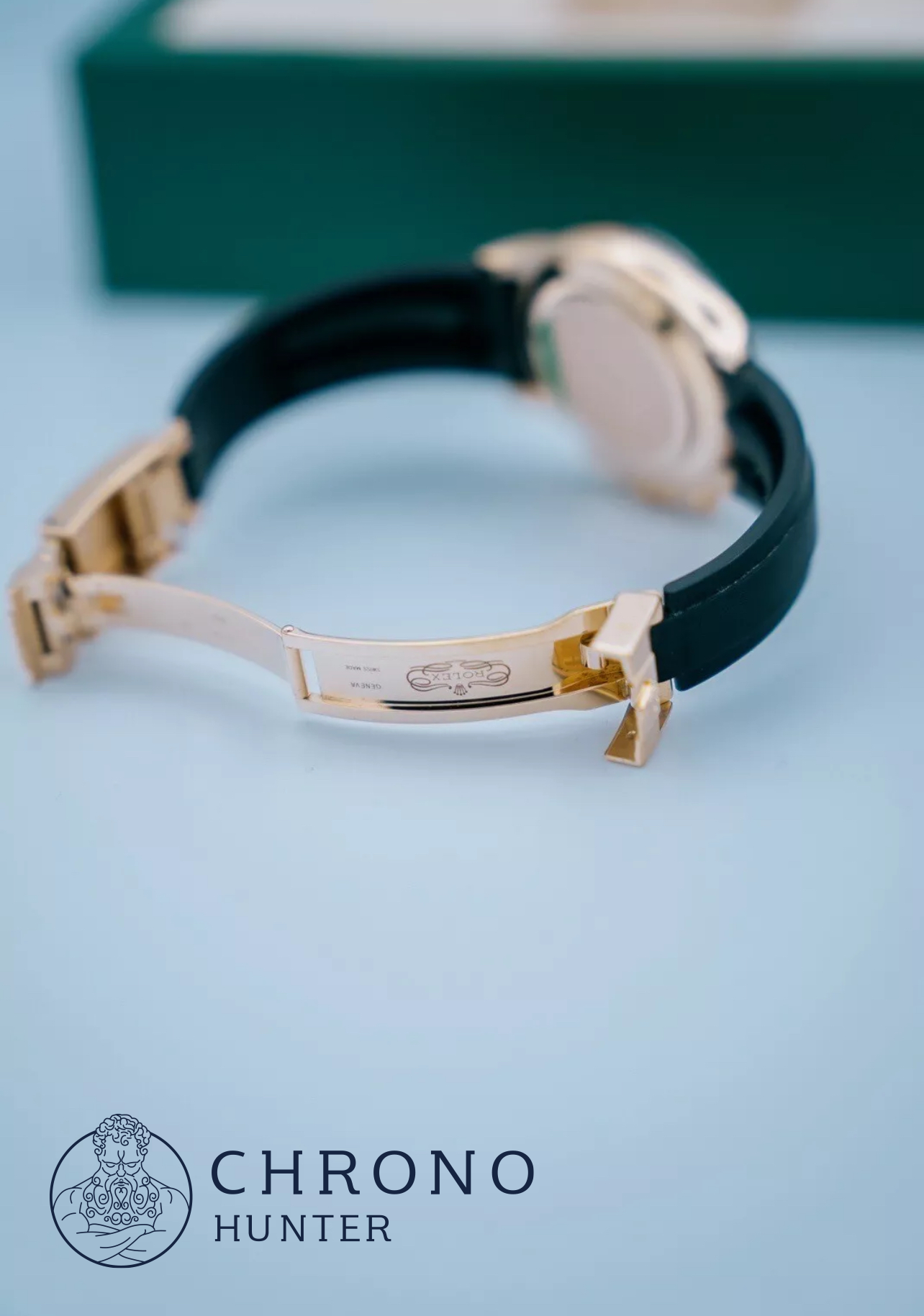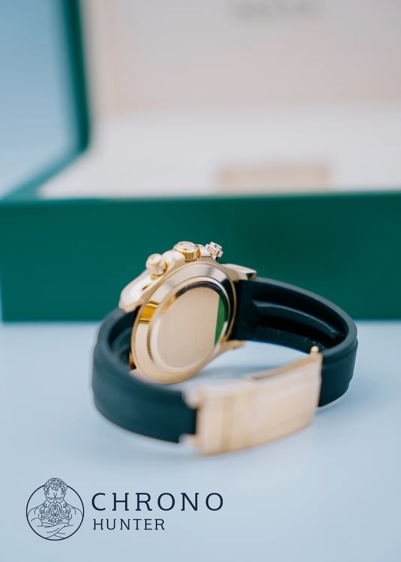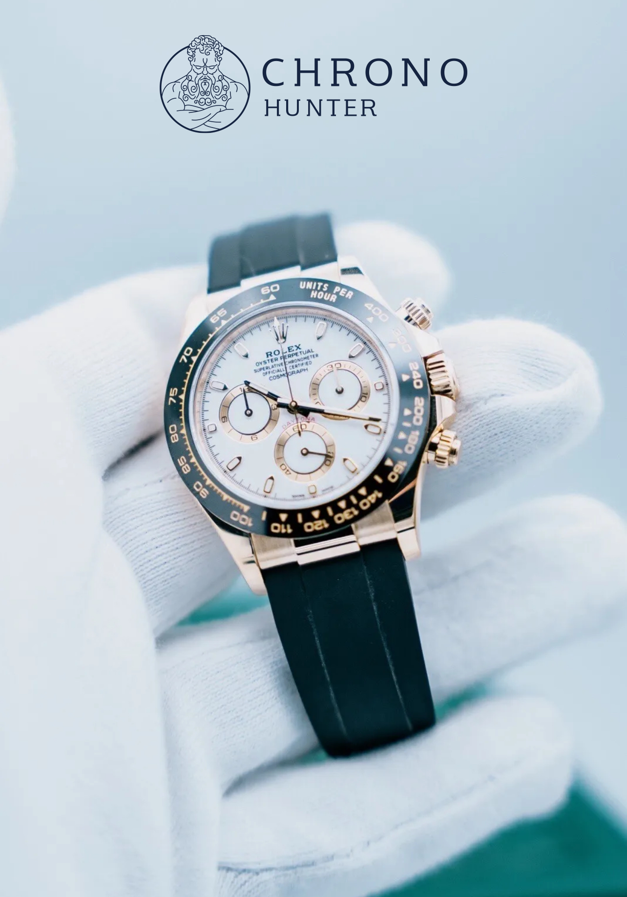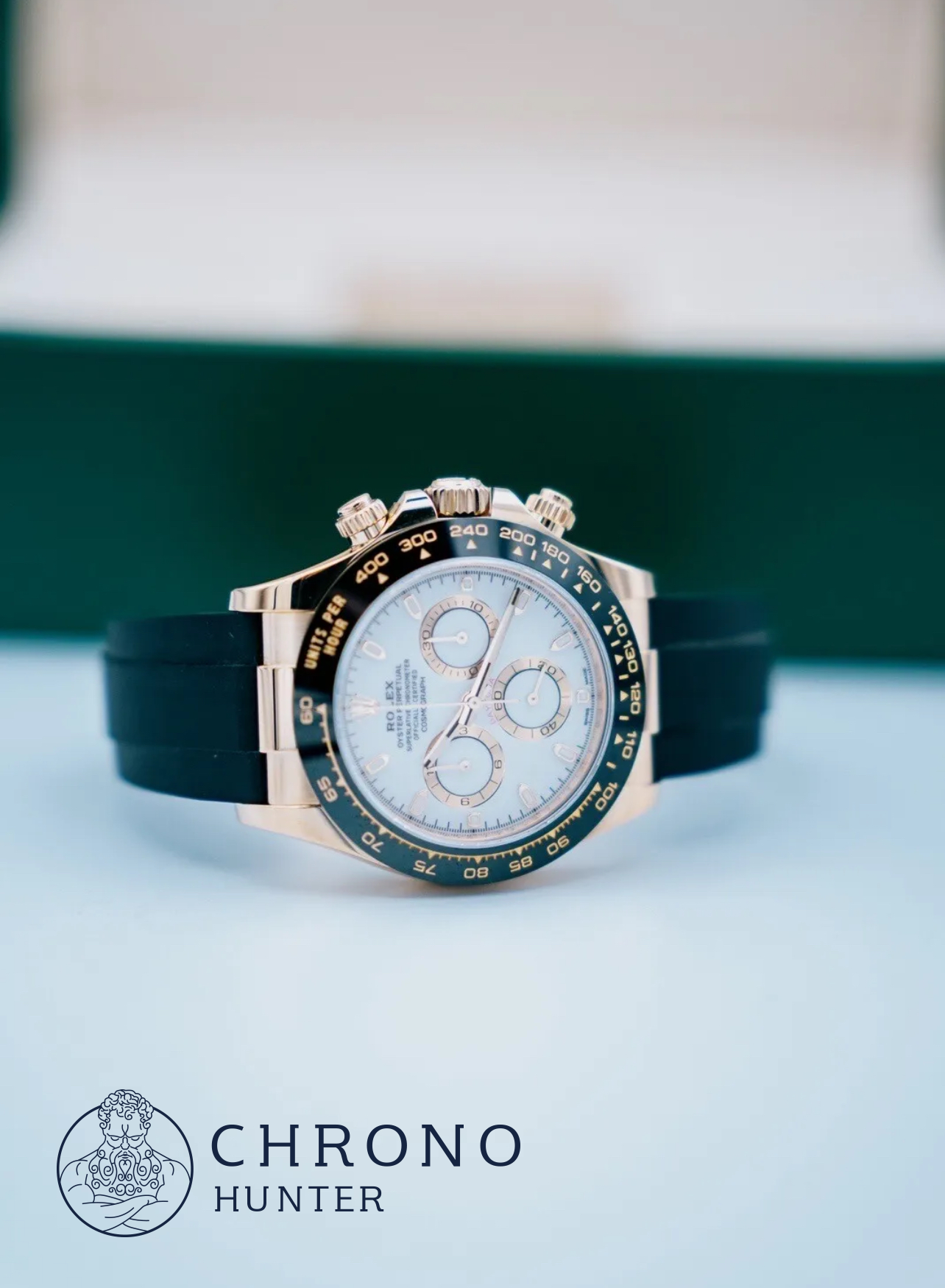 Elevate your style with the Rolex Daytona Reference 116518LN, crafted in 18k yellow gold and featuring a crisp white dial that pops against its black ceramic bezel. The sleek Oysterflex strap offers unparalleled comfort, combining sportiness with elegance.